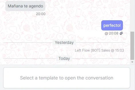 Con esto puede ocurrir un caso en el que tienes una conversación con un cliente que dura más de 24h sin tener que usar una plantilla. En este caso, se cobrarán dos conversaciones, ya que hay una conversación del primer mensaje hasta que hayan pasado 24h, y otra desde el momento en que se envió un mensaje después de las 24h.